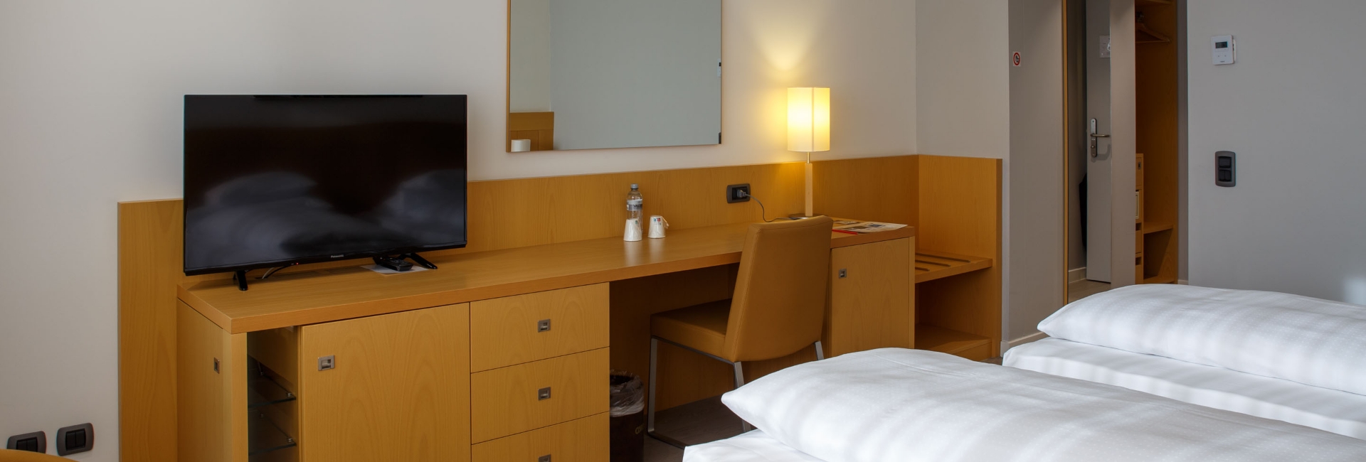 Perfetta per viaggiatori singoli o in coppia, questa camera dispone di due letti singoli (possibilità di letto matrimoniale su richiesta), aria condizionata, Wi-Fi gratuito e insonorizzazione per garantire un soggiorno rilassante.